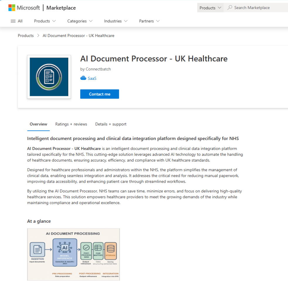 We are thrilled to announce the official launch of Connectbatch’s AI Document Solution for UK Healthcare, now available on the Microsoft Marketplace! This marks a significant step forward in our mission to simplify and accelerate document workflows across the healthcare sector.